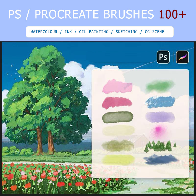 ♥ This pack include 130+ Procreate watercolor and pencil brushes ♥ iPad Compatibility: All models that can run the Procreate app and Adobe Photoshop This set includes very easy to use Procreate watercolor, lines and pencil brushes for artists and designers who want to try watercolor or painting on the iPad or adobe photoshop software. You do not need to be an advanced artist to use these brushes, just choose a brush and paint, it will do everything for you. And the combination of watercolor and pencil will give an incredible result.